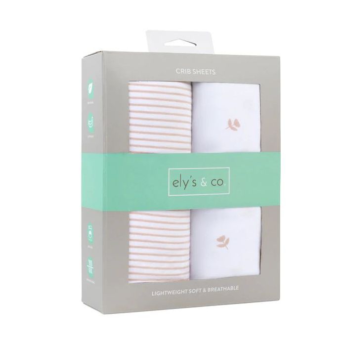 - These lovely, light, pink blush crib sheets feature a modern, minimalist mauve and white stripe detail and our exclusive mauve and white Tulip design. We designed this fresh and feminine sheet set to complement baby girl’s nursery décor. Show us how you style this gorgeous nursery bedding set by tagging Ely’s & Co. on social media!