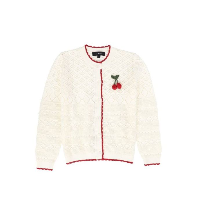 Bamboo Open Knit Scallop Trim LS Cardigan