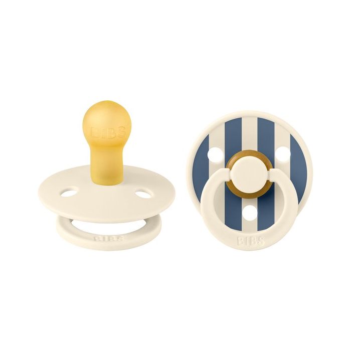 You're reviewing: Bibs 2 pack Studio Colour Rubber Size 1 Pin Ivory/Steel Blue Mix