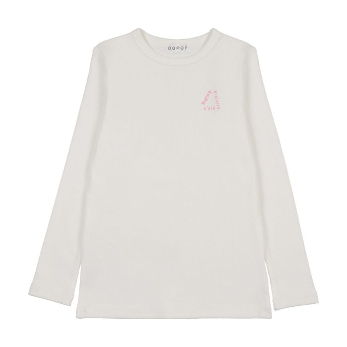 Bopop Raspberry Collection LS White Tee Raspberry Print