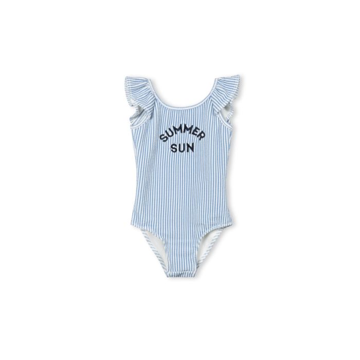Cabana Seersucker Ruffle Trim Logo Swimsuit