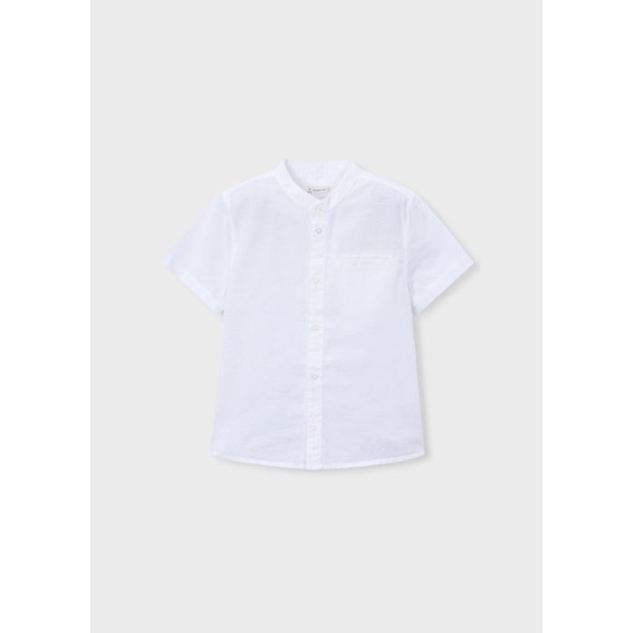 Mayoral S/S Linen Mao Collar Shirt White