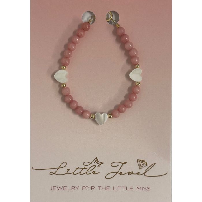 My Little Jewel Pink Gemstone and Mop Heart Beaded Blacelet