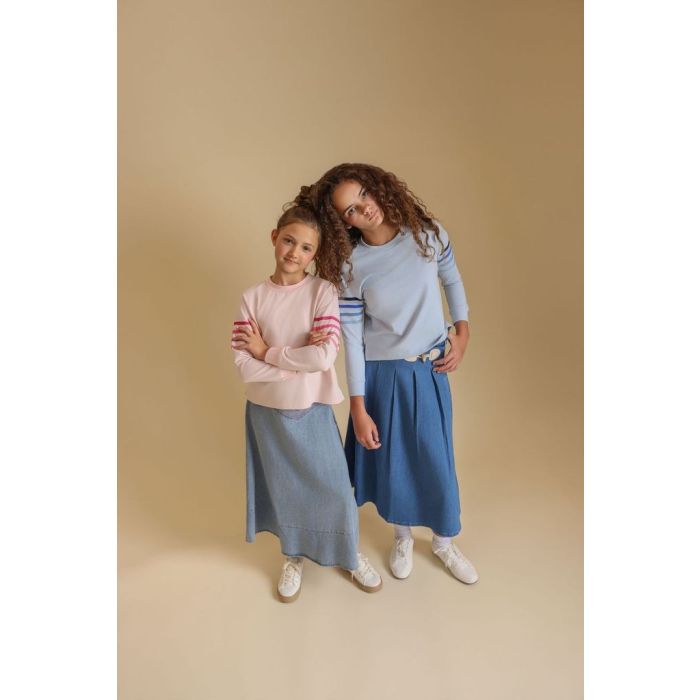 Vibe Striped Sleeve Detail T-shirt Pink