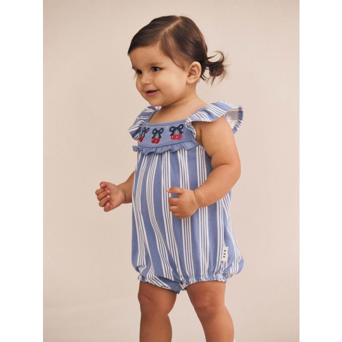 HUXBABY VINTAGE STRIPE CHERRY ROMPER