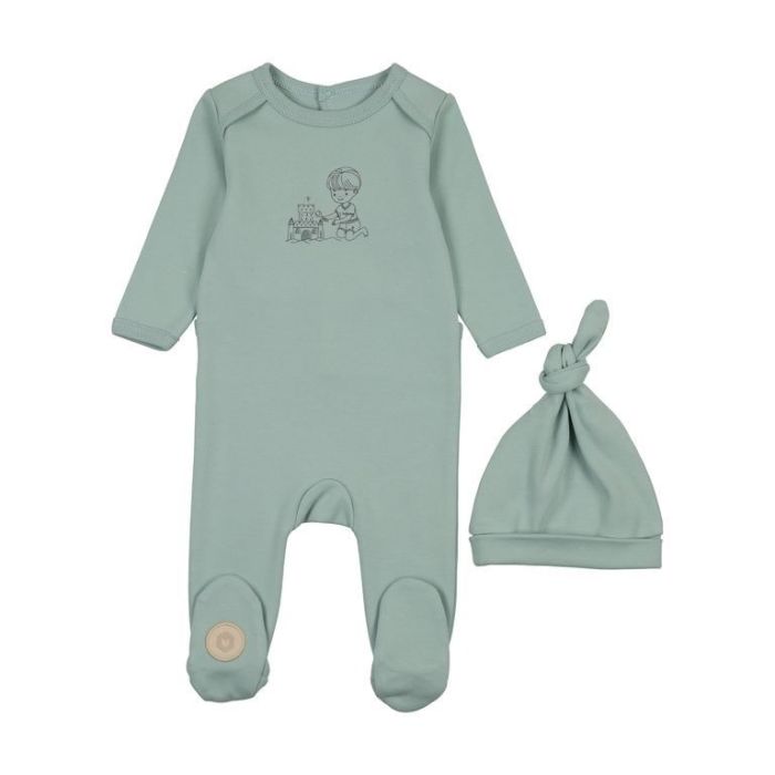 Mon Tresor Castle Cutie Boys Footie & Hat Set Frostie Blue