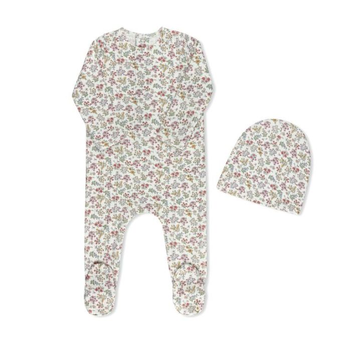 Tricot Liberty Print Footie+Beanie Floral