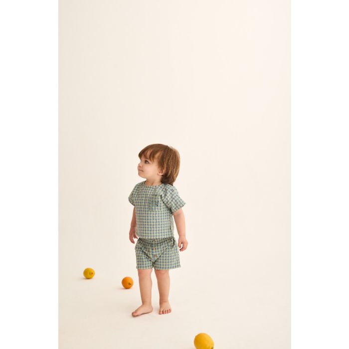 Cozmo Gingham Blue Baby Top and Shorts Set