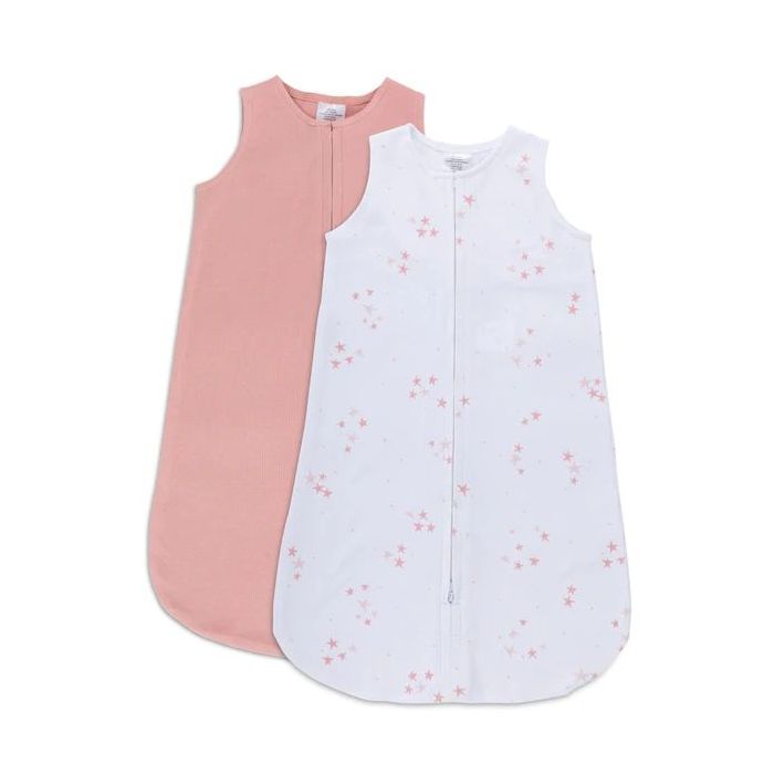 Ely's & Co Cotton Wearable Blanket Sleep Bag 2 Pack Pink Stars and Solid Pink Small 0-3 Months