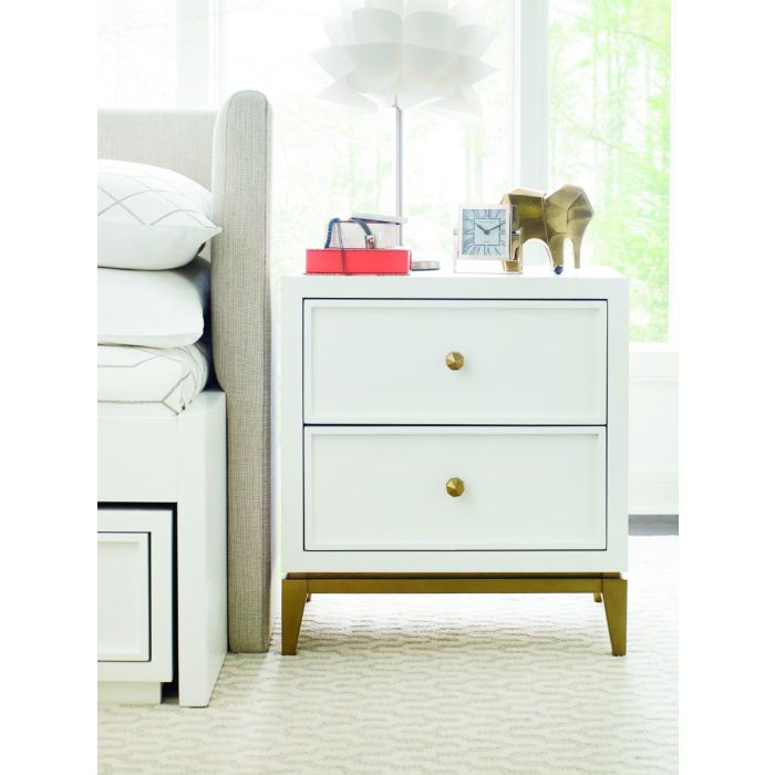 Rachael's Chelsea youth 2 Drawer Nightstand with Decorative Lattice is a glamorous, sophisticated grouping that brings her fashion-forward taste to any age. From storage to sleep to study, these modern, intriguing pieces will be loved from a young age to a college dorm room. The clean transitional lines of the white finish are offset with gold accents and soft knob hardware, making each piece as warm and inviting as it is stylish.