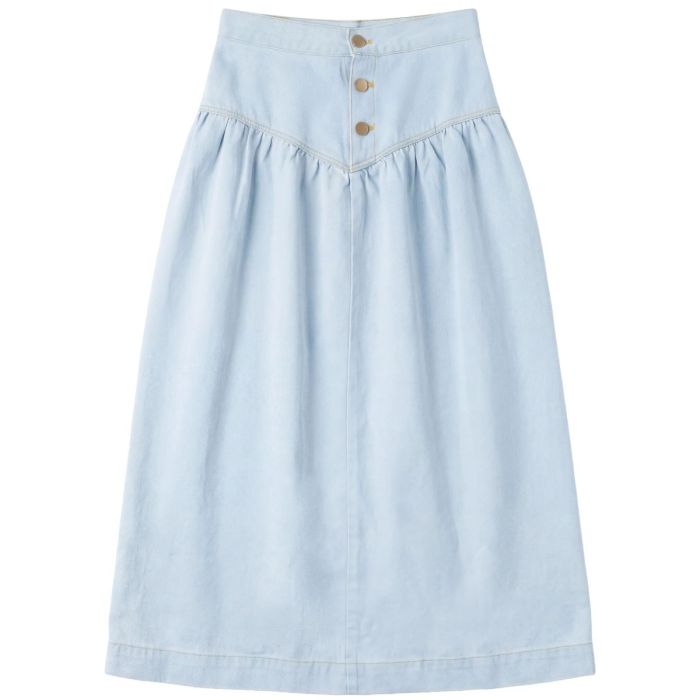 Fyi Girls Denim Long Skirt With V Yoke Light Denim