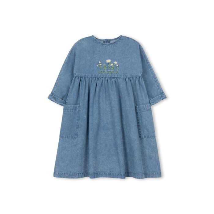 Hello Yellow Denim Embroidered Top And Pocket Dress