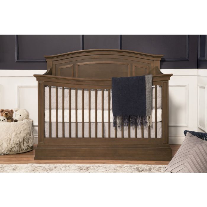 With its stately presence, the Durham 4-in-1 Convertible Crib introduces a dignified air into your nursery. The crib’s front rail curves to underscore its thoughtfully designed molding, while its elegantly arched headboard and contoured rails create a tranquil space for your baby to sleep. The Durham Crib pairs with the Foothill/Louis 6-Drawer Dresser.