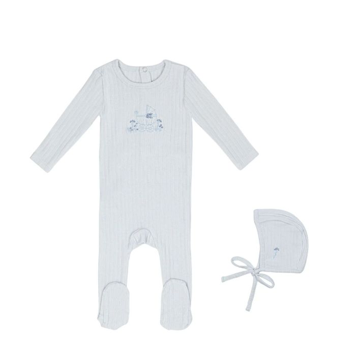 Mini Label Embroidered Carriage-Boys Footie and Hat