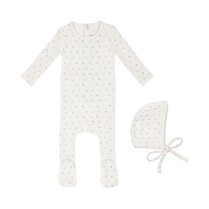 Mini Label Ivory Petal Pointelle Floral Footie and Hat