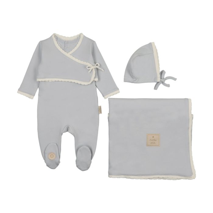 Mon Tresor Scalloped Wrap Cardigan Layette Set Blue Dawn