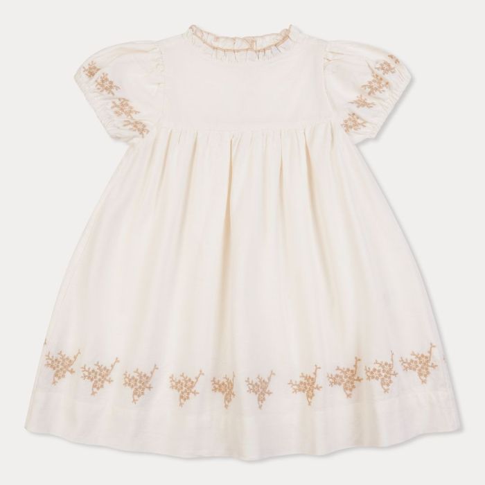 Orange Dimanche Off-white linen dress with embroidery