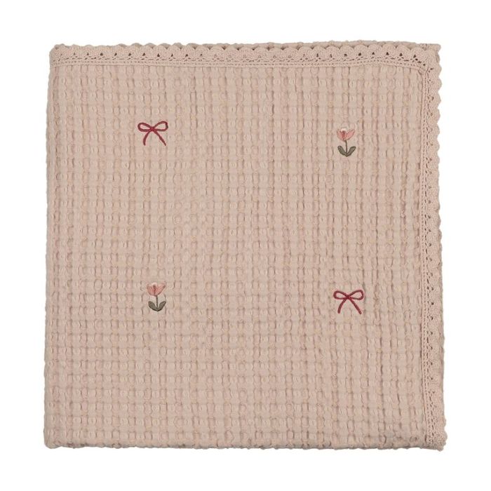 Peluche Waffle EMB Blanket - Rose - Tulips and Bows