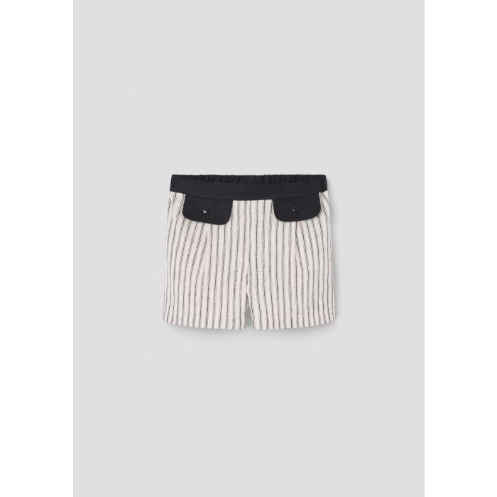 Popelin Black Striped Shorts with Flaps