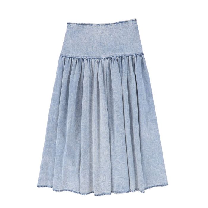 Viva Valentina Drop Waist Pleated Maxi Skirt Lt Blue Denim