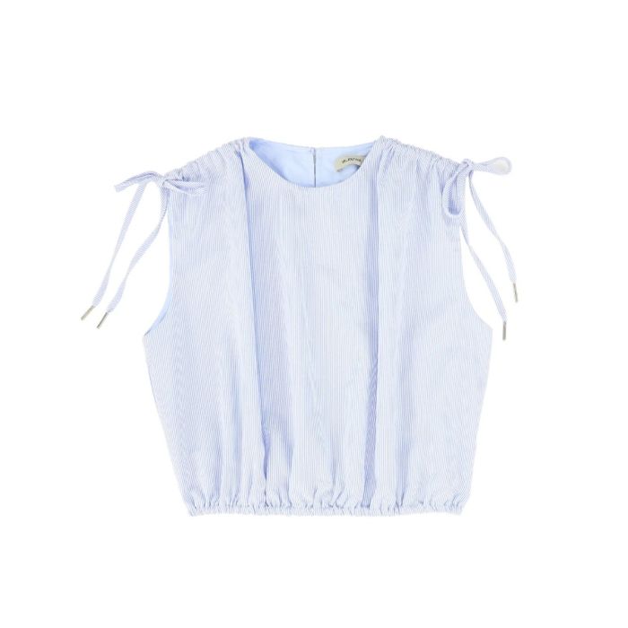Viva Valentina Striped Linen Bubble Blouse Blue